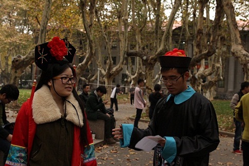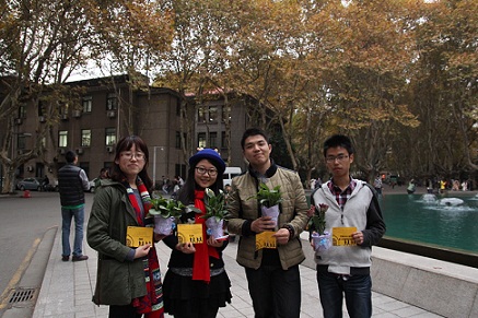 11月15日下午14:30,来自四牌楼校区各个院系的31名同学齐聚喷泉,大家先自行按照2男2女分组,随后经过重重关卡,逸夫楼内寻女伴,校大鼎旁演真情,动力楼外寻线索,图书馆内寻编码,体育场内拼体能,校梅庵旁寻卡片,校喷泉前拍合照以及沿途的支线任务(随手拍下事先抽到的照片),大家最终又回到了我们活动的起点——喷泉。在整个过程中各组队员相互合作,发挥所长,拼尽全力完成各个关卡,挣当第一,每个选手都跑得满头大汗。