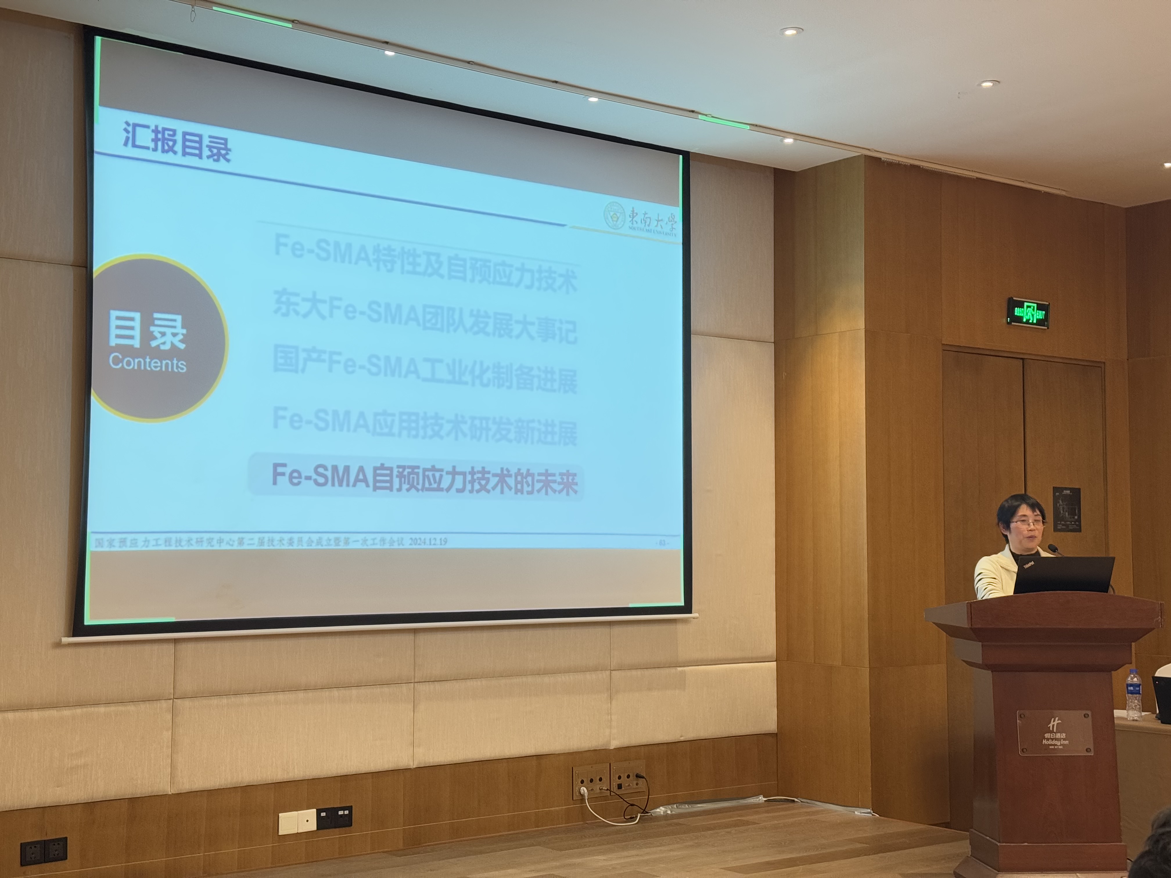 国家预应力工程技术研究中心主任吴京向技术委员会作了中心工作报告。报告总结了近年来中心围绕预应力领域新材料、新方法、新技术、新结构等方面开展的系统性研究,并介绍了中心的实验设施建设情况。随后,中心骨干刘钊、范圣刚、罗斌、朱虹分别作了题为“低松弛钢绞线条件屈服点及本构模型探讨”、“基于多尺度方法的不锈钢结构抗火设计理论”、“建筑索结构智能建造技术研究与应用”、“Fe-SMA自预应力技术体系研发进展和未来规划”的技术报告。