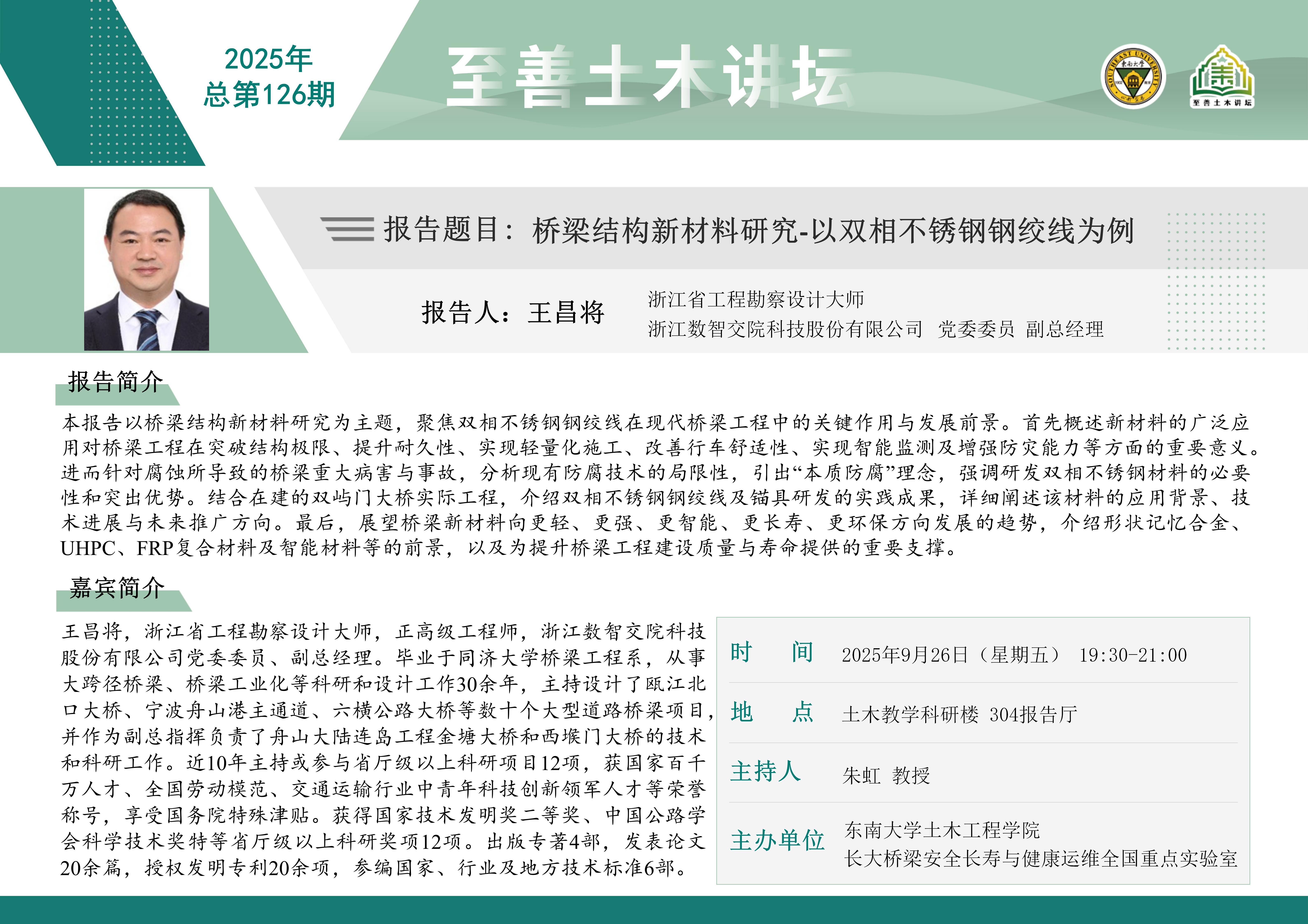 至善土木讲坛2025年总第126期 | 桥梁结构新材料研究-以双相不锈钢钢绞线为例